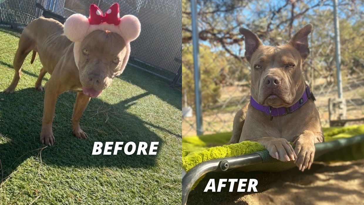 When Nala was rescued from the shelter, she was emaciated, uncomfortable, and losing hope. With love and specialized nutrition, she has already gained 26 pounds and transformed into a healthier, happier dog.